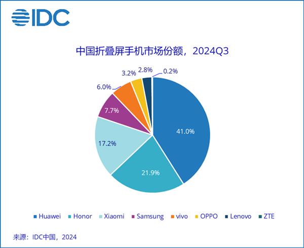 IDC表示,折叠屏手机自2019年问世以来,虽然经过了5年的快速发展,市场渗透率依然只有3.2%(2024年前三季度)。