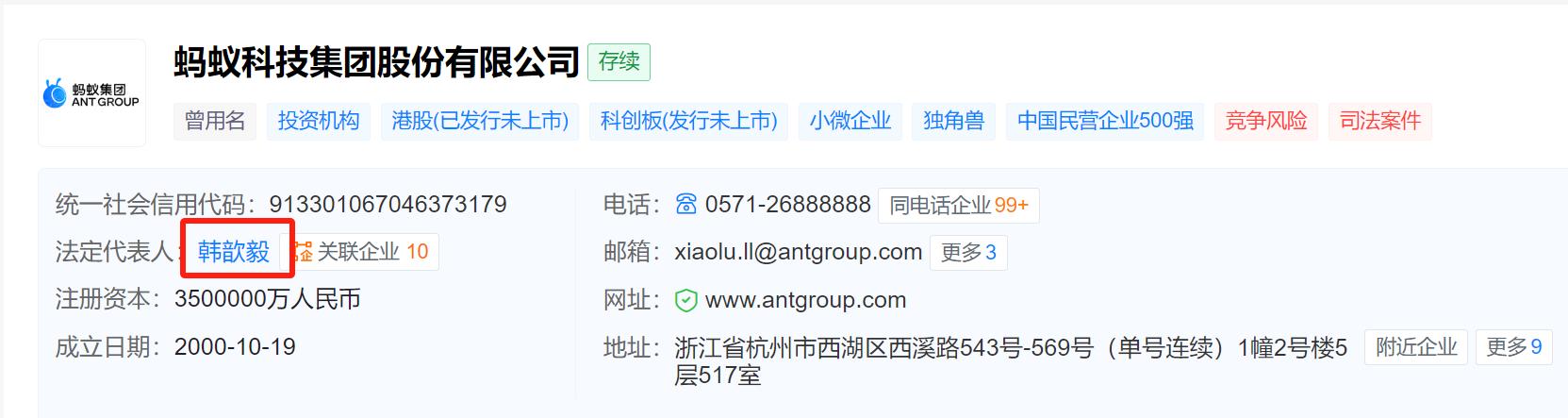 据接近蚂蚁集团的人士表示,韩歆毅在接任蚂蚁集团CEO之后担任蚂蚁的法人代表,是蚂蚁集团治理的正常安排,不影响该公司日常经营。
