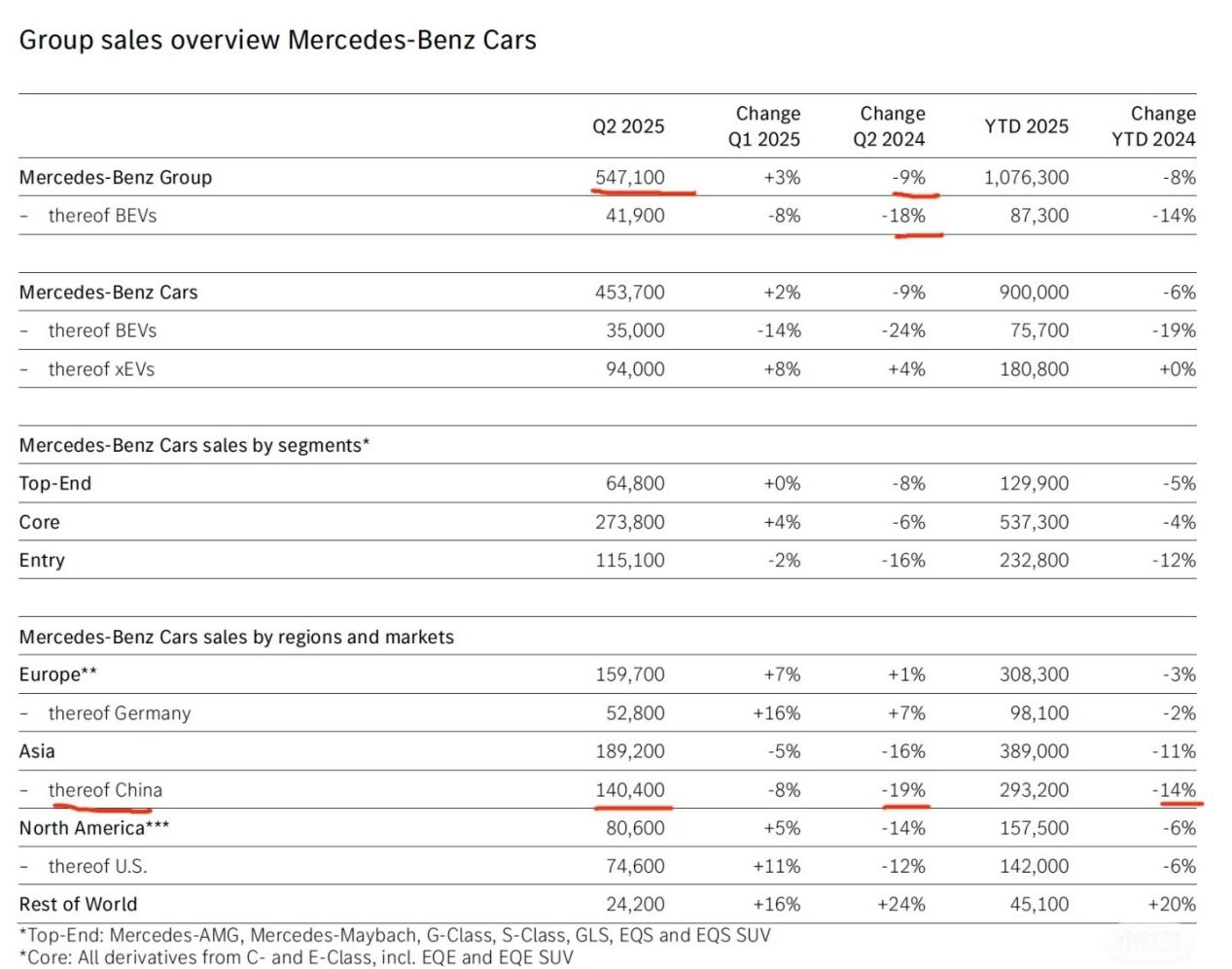 近日,梅赛德斯-奔驰公布了其第二季度销量成绩单。