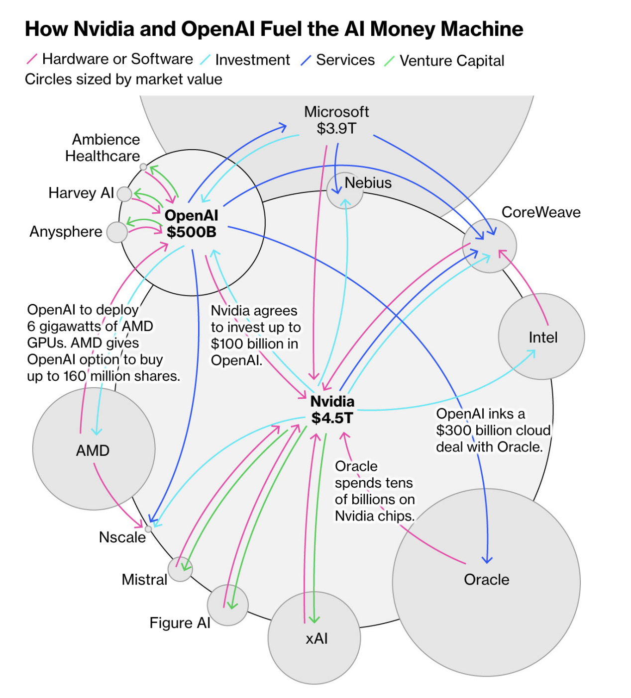 据 OpenAI 高管估计,按目前的价格计算,每部署 1 千兆瓦的人工智能计算能力的成本约为 500 亿美元,总成本约为 1 万亿美元。这些交易将一些全球最大的科技集团与 OpenAI 的能力紧密联系在一起,OpenAI 有能力发展成为一家盈利企业,并能够偿还其日益沉重的财务负担。