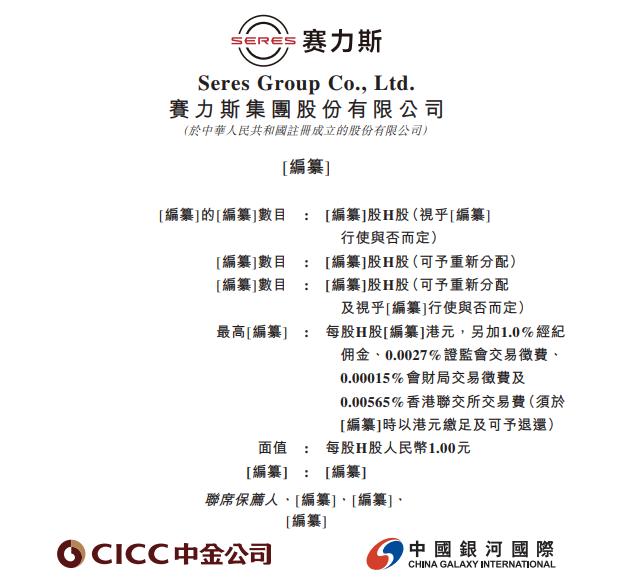 赛力斯集团于2025年4月向港交所提交IPO申请,联席保荐人为中金公司、中国银河国际。2025年9月25日,赛力斯集团发布公告,宣布发行境外上市外资股(H股)已获中国证监会备案。