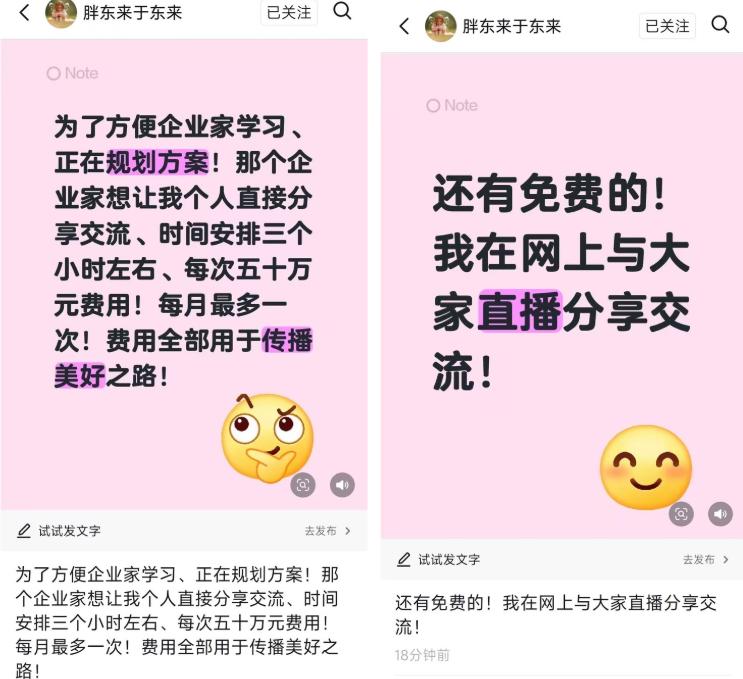 于东来后续补充称,除付费项目外,还将通过线上直播开展免费分享交流,满足不同群体的学习需求。目前,两项付费计划的具体报名通道尚未开放,相关细则仍在规划中。