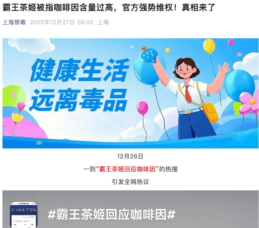 12月26日,“霸王茶姬回应咖啡因”登上热搜,引发全网热议。
