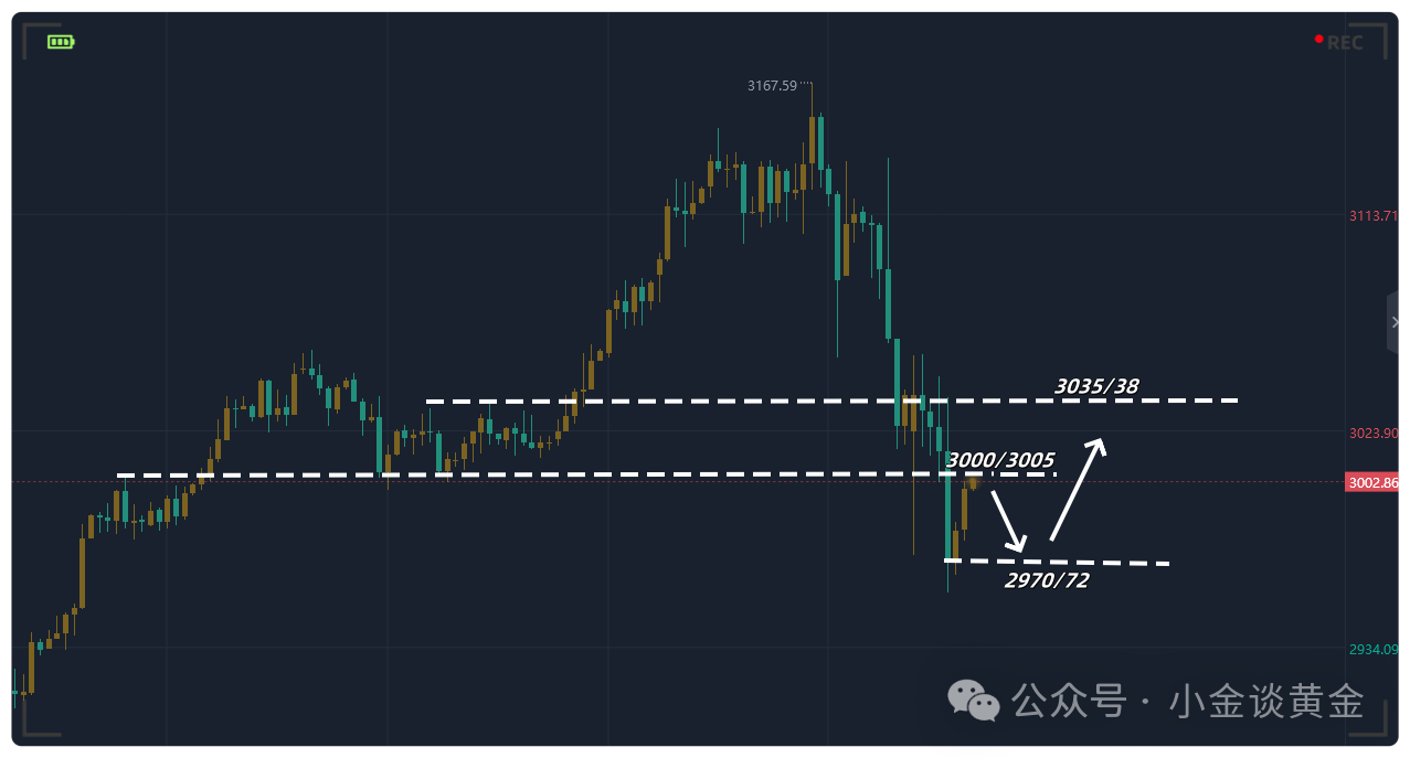 鉴于此前黄金价格下跌幅度过大,短期内价格直接转强的可能性较小。即使出现反弹,也大概率会以震荡上升的形态展开。在反弹过程中,首先需要关注 3000 - 3005美元一带的压制位能否被有效突破。若亚盘时段黄金价格持续承压于该区域,可考虑围绕这一线位进行短空参与。