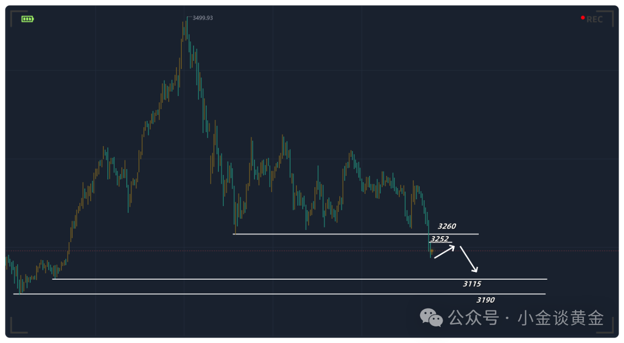 上一交易日,国际黄金在3270下方维稳后,晚盘出现反抽,一度触及3320位置,整体仍处于大幅宽幅震荡格局。然而,今日早间盘面直接击穿3260关键支撑位,箱体向下破位,这表明此轮修正幅度进一步加大。