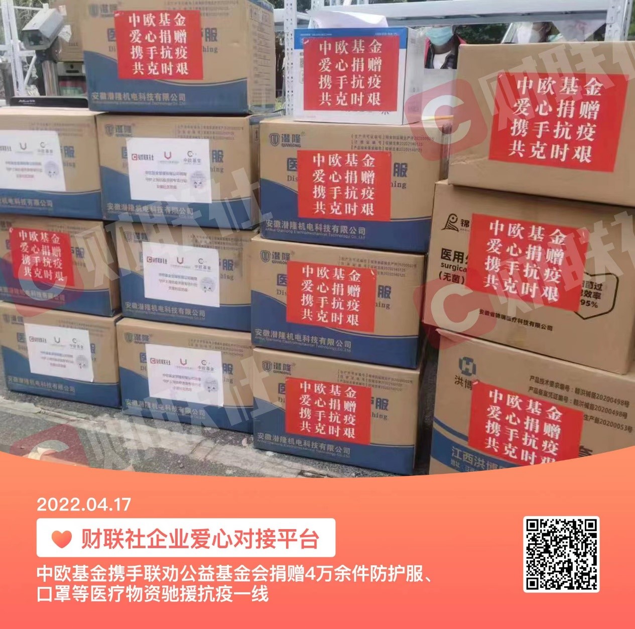 中欧基金捐赠防护服、口罩等医疗物资,携手财联社、联劝公益驰援抗疫一线
