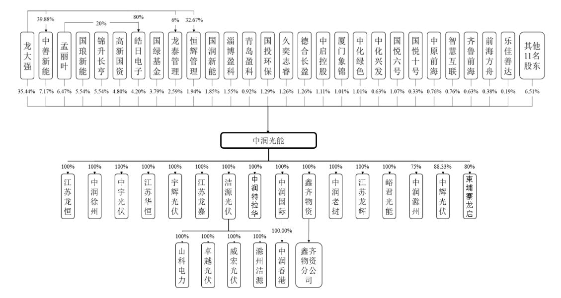 公司控股股东为龙大强,实际控制人为龙大强、孟丽叶夫妇。龙大强直接持有公司35.44%的股份,并持有中善新能39.88%的出资额,持有皓日电子80.00%的股份,持有恒辉管理32.67%的出资额并担任执行事务合伙人,持有龙泰管理6%的出资额并担任执行事务合伙人;孟丽叶直接持有公司6.47%的股份,并持有皓日电子20.00%的股份,龙大强、孟丽叶夫妇共计直接和间接持有公司49.76%的股份,实际控制公司50.64%的股份。