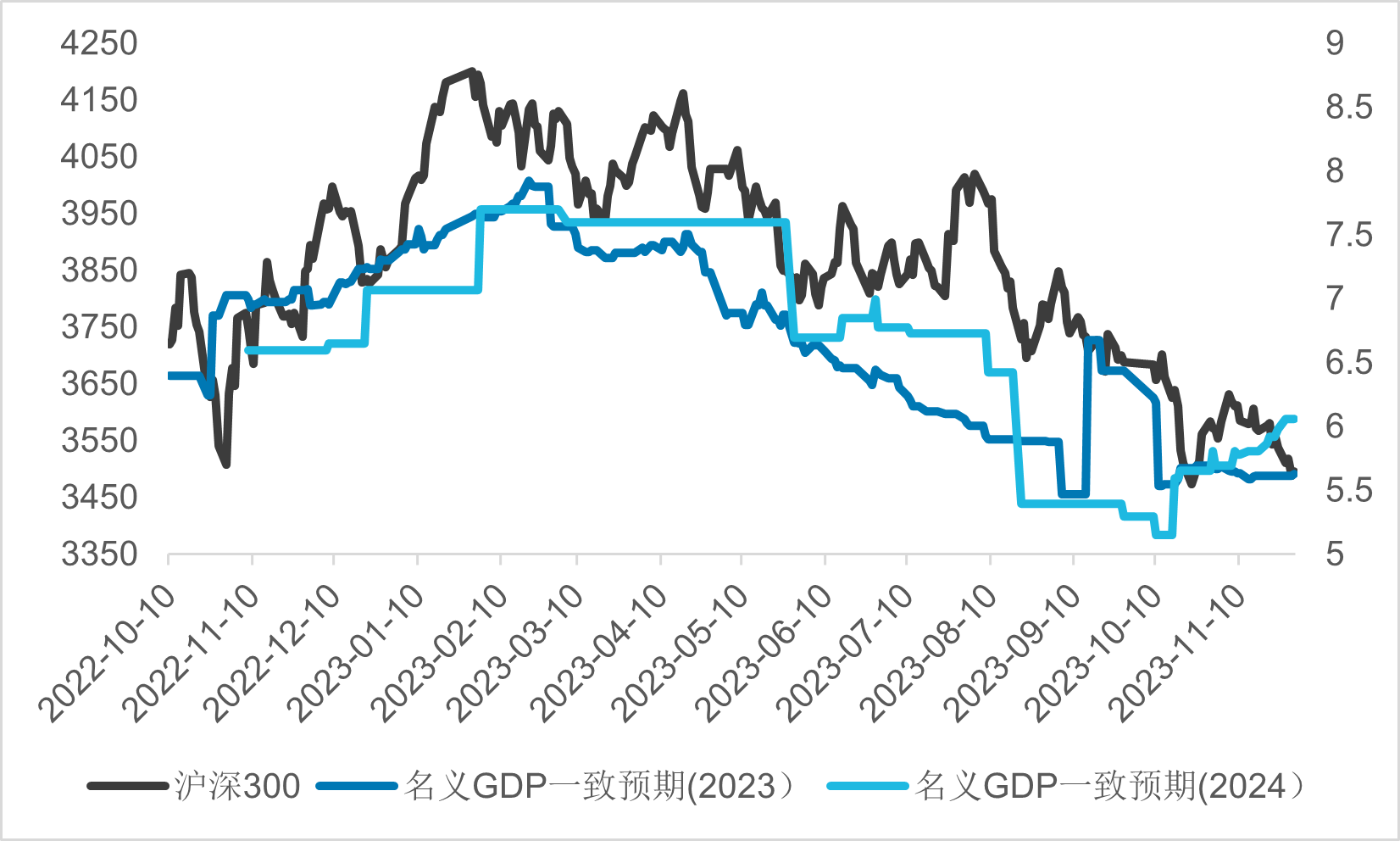 2022年11月以来,沪深300与名义GDP一致预期走势较为一致;未来1年主要宽基指数盈利预期均有不同程度的修复,其中成长资产盈利修复程度更高。