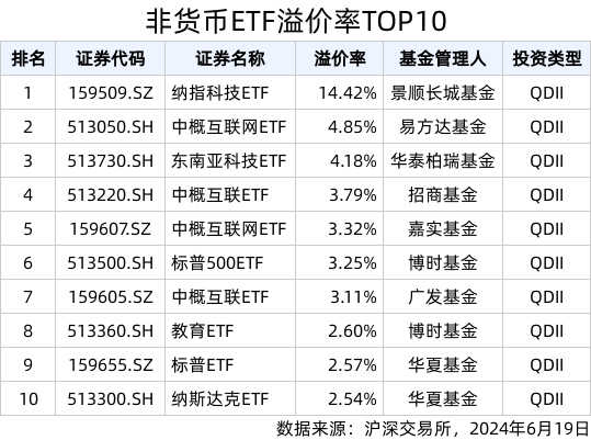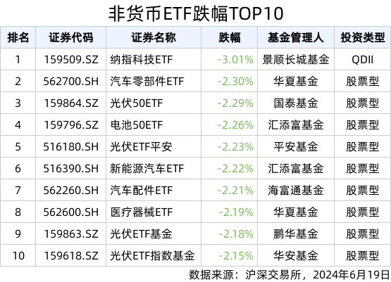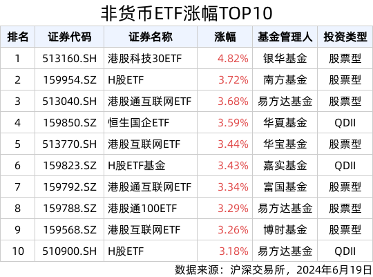 ETF英雄汇(2024年6月19日):港股科技30ETF(513160.SH)领涨、纳指科技ETF(159509.SZ)溢价明显