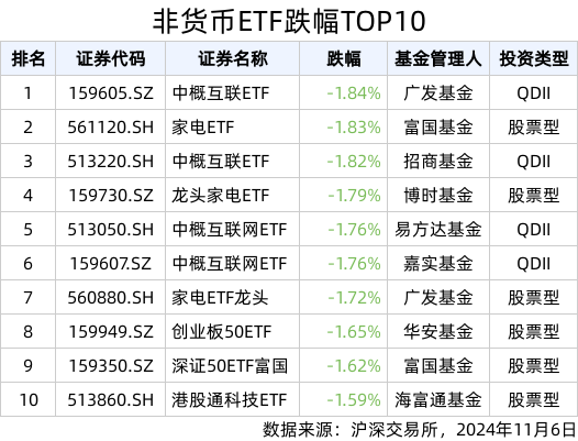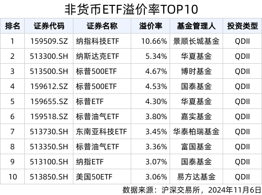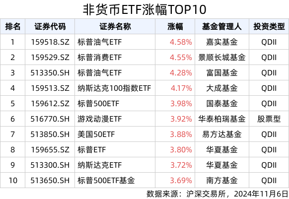 ETF英雄汇(2024年11月6日):标普油气ETF(159518.SZ)领涨、纳指科技ETF(159509.SZ)溢价明显
