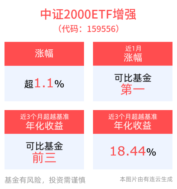 中证2000ETF增强(159556)上涨1.17%,近1周涨幅居同类产品第一,小盘成长仍将持续占优