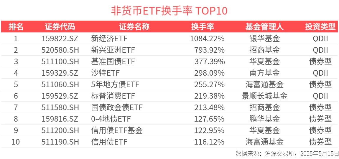 ETF热门榜(2025年5月15日):中证短融相关ETF成交居前,新经济ETF(159822.SZ)交易活跃