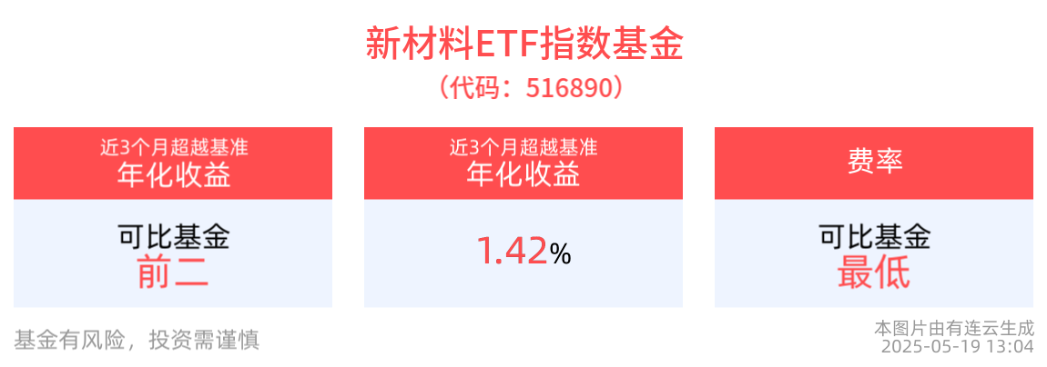 新材料ETF指数基金紧密跟踪中证新材料主题指数,中证新材料主题指数选取50只业务涉及先进钢铁、有色金属、化工、无机非金属等基础材料以及关键战略材料等新材料领域的上市公司证券作为指数样本,以反映新材料主题上市公司证券的整体表现。