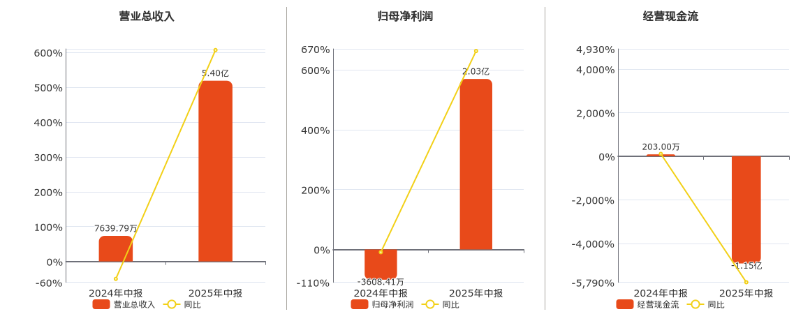 公司营业总收入为5.40亿元。归母净利润为2.03亿元。经营活动现金净流入为-1.15亿元,较去年同报告期经营活动现金净流入减少1.17亿元,同比较去年同期下降5785.63%。