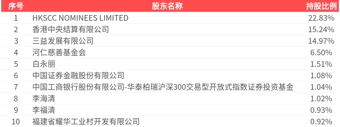 公司股东户数为8.57万户,前十大股东持股数量为17.24亿股,占总股本比例为66.04%,前十大股东持股情况如下: