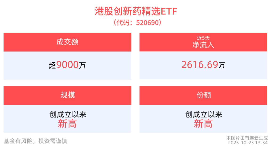 中国创新药资产加速走向国际,港股创新药精选ETF(520690)盘中交投活跃,最新规模、份额创成立以来新高