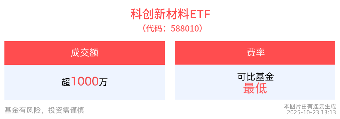流动性方面,科创新材料ETF盘中换手8.03%,成交1993.37万元。拉长时间看,截至10月22日,科创新材料ETF近1周日均成交3217.69万元,居可比基金第一。