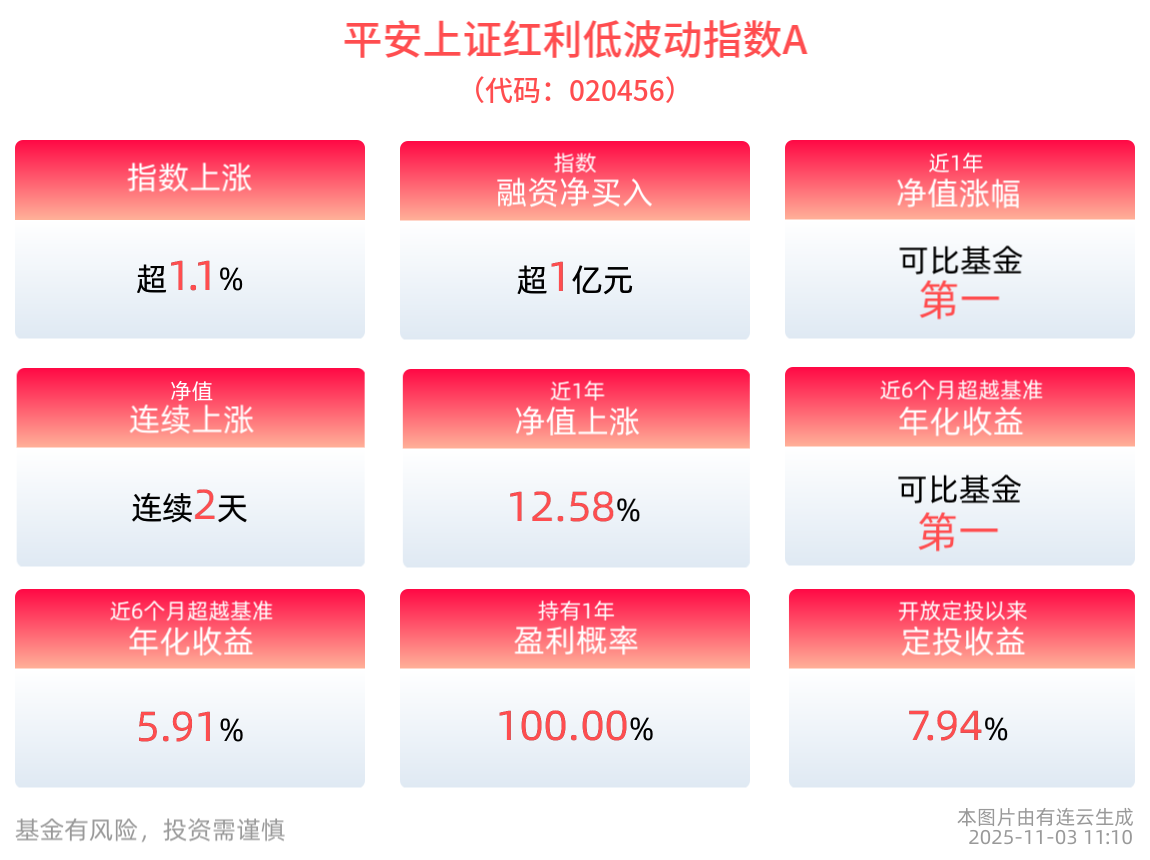 关注平安上证红利低波动指数A(020456),关联基金(平安上证红利低波动指数E:024611;平安上证红利低波动指数C:020457)。