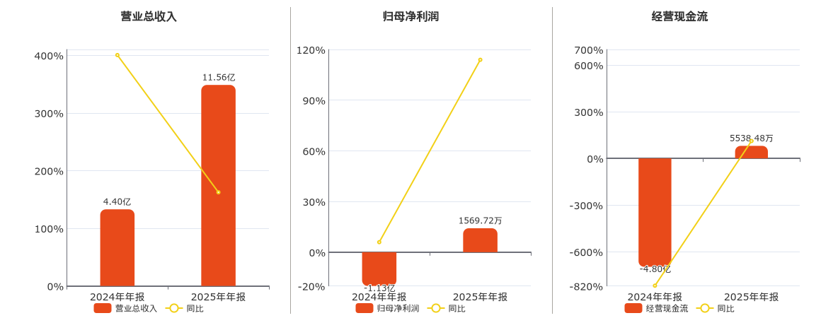公司营业总收入为11.56亿元。归母净利润为1569.72万元。经营活动现金净流入为5538.48万元。
