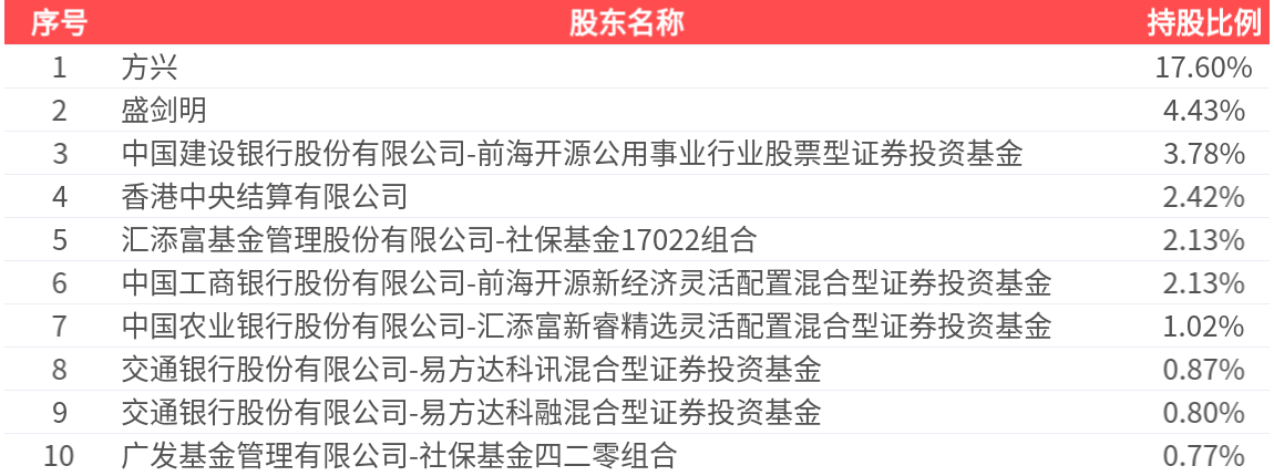 公司股东户数为3.25万户,前十大股东持股数量为1.12亿股,占总股本比例为35.96%,前十大股东持股情况如下: