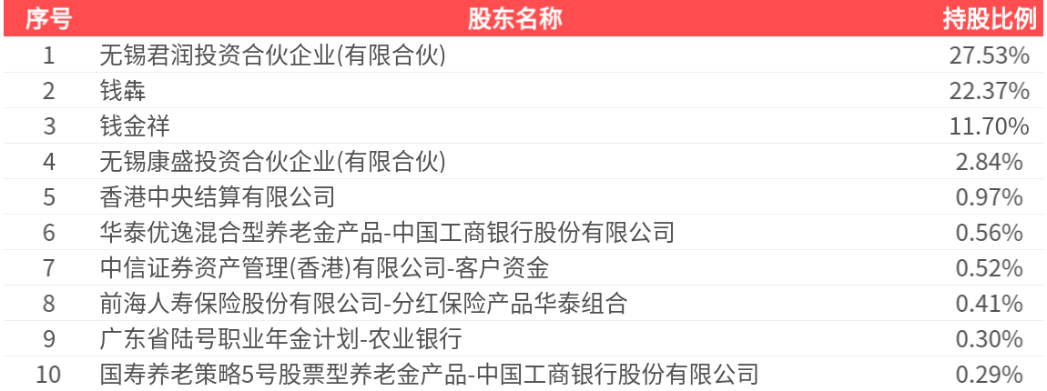 公司股东户数为1.72万户,前十大股东持股数量为2.36亿股,占总股本比例为67.48%,前十大股东持股情况如下: