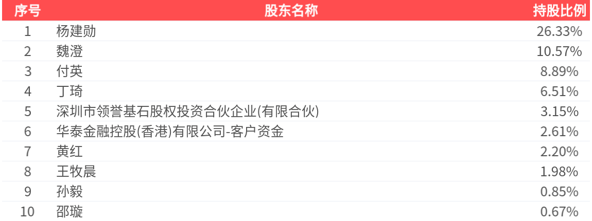 公司股东户数为1.11万户,前十大股东持股数量为9998.58万股,占总股本比例为63.76%,前十大股东持股情况如下: