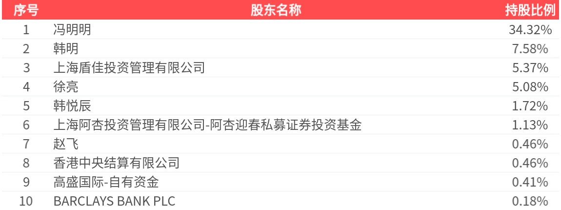 公司股东户数为5.48万户,前十大股东持股数量为2.60亿股,占总股本比例为56.71%,前十大股东持股情况如下: