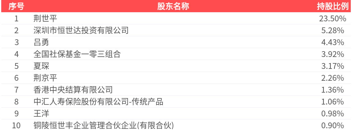 公司股东户数为2.18万户,前十大股东持股数量为1.20亿股,占总股本比例为46.85%,前十大股东持股情况如下:
