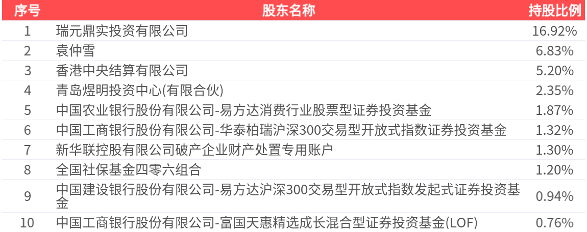 公司股东户数为4.21万户,前十大股东持股数量为12.73亿股,占总股本比例为38.72%,前十大股东持股情况如下: