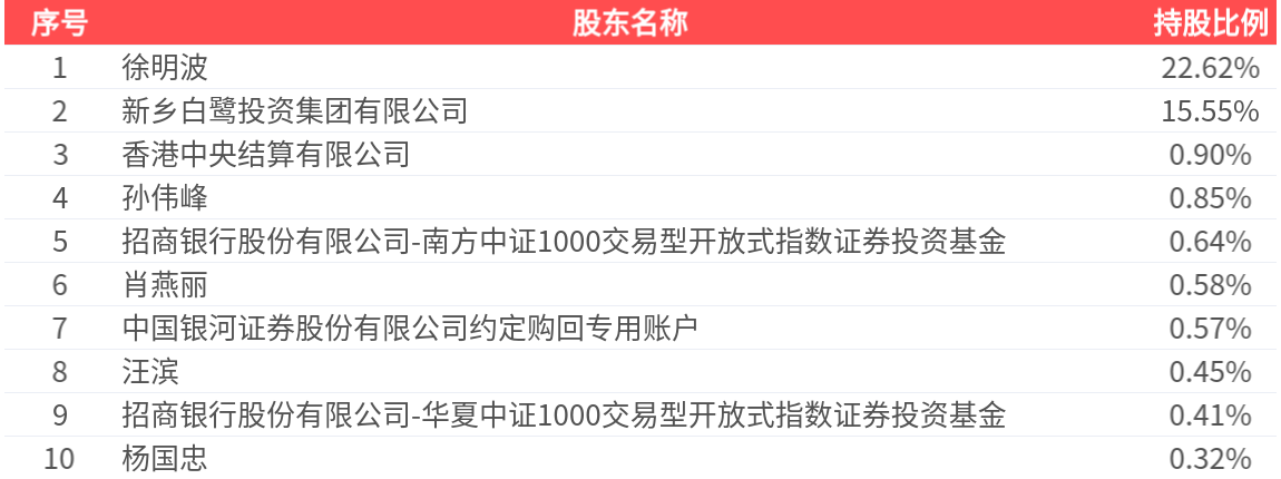 公司股东户数为5.72万户,前十大股东持股数量为4.41亿股,占总股本比例为42.89%,前十大股东持股情况如下: