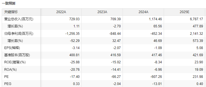 不过,Choice金融终端数据显示,截至2月28日,机构对于寒武纪2025年营业收入的一致预测值为67.87亿元,归母净利润的一致预测值为21.41亿元。公司业绩快报披露的营业收入、归母净利润均低于市场预期。