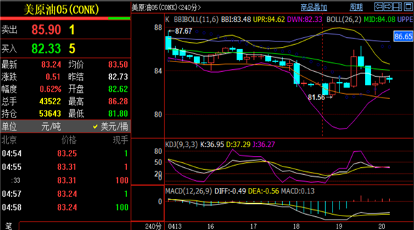 原油行情走势分析:原油周线两连阴收盘,本周低点触及81.5位置止跌反弹,最终收报82.3一线,但本周任然下跌29个点,整周振幅-3.43%。技术面上1小时布林带平仓发展,上轨位于84.8一线,下轨支撑在80.8位置,这会是下周一的震荡区间,细分下来看可以暂定本周低点81.5和小时线上轨84.8区间对待,目前日线和4小时图形SAR抛物线都处于高位向下发散,主体思路维持反弹高空建仓更稳健。下周若高开触及84.7-85.2区域做空,止损85.8,目标83.8-82.5;若低开触及81.5-81区域做多,止损80.5,目标83-84;临盘实时策略刘铭诚会在下周一给出提示、