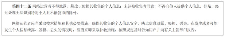 《网络安全法》第四十二条规定:“在发生或者可能发生个人信息泄露、毁损、丢失的情况时,应当立即采取补救措施,按照规定及时告知用户并向有关主管部门报告。”
