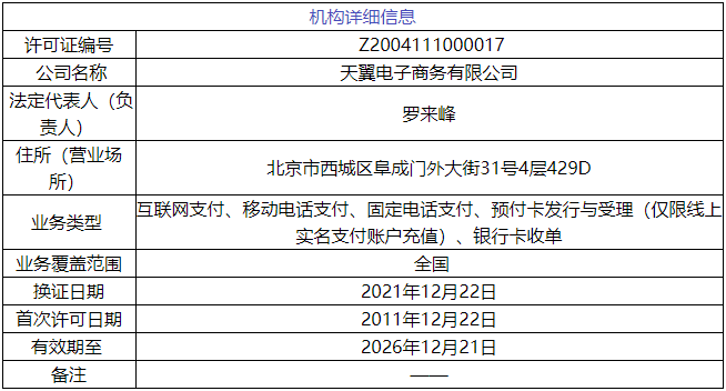 翼支付则成立于2011年3月,注册资金为5亿元,早期是中国电信的全资子公司。翼支付2011年12月获得支付牌照,资质包括移动电话支付、固定电话支付、银行卡收单等。在2014年4月,翼支付再增加互联网支付和预付卡发行与受理(仅限线上实名支付账户充值)两个资质。