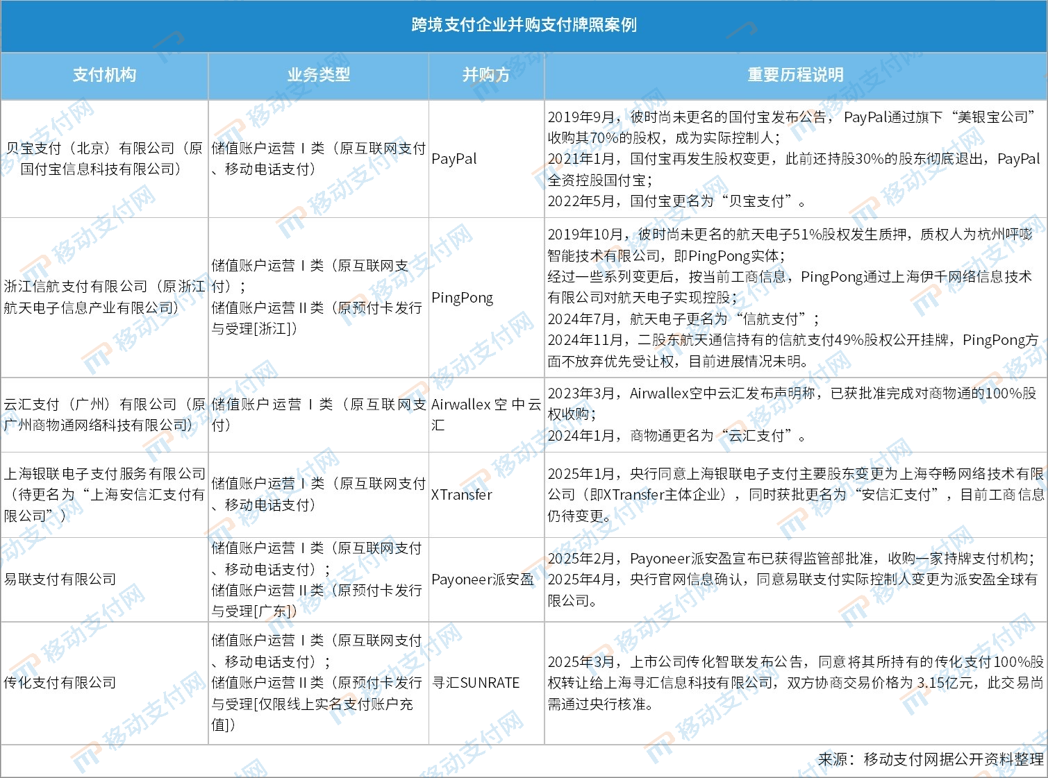 移动支付网消息(卢华秋):随着人民银行同意支付机构易联支付实际控制人变更为派安盈全球有限公司,意味着又一家专注于跨境支付的金融科技企业通过并购的方式拿下内地支付牌照。而在此之前,PayPal、PingPong、Airwallex空中云汇、XTransfer都已成功入局,上海寻汇收购传化支付也正待审批。以“合规+跨境支付”为主要驱动力,支付牌照并购进入了3.0阶段。
