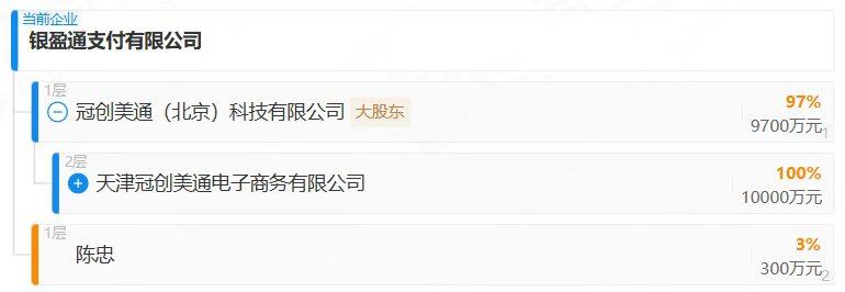 银盈通于2016年10月宣布和国美控股达成战略合作。2017年6月7日,港股上市公司国美金融科技发布公告,宣布通过VIE合同收购并实际控制银盈通背后的控制主体——天津冠创美通电子商务有限公司(简称“天津冠创”)。不过根据国美金融科技后来披露的信息,人民银行曾于2021年通知该收购的审批程序暂停。