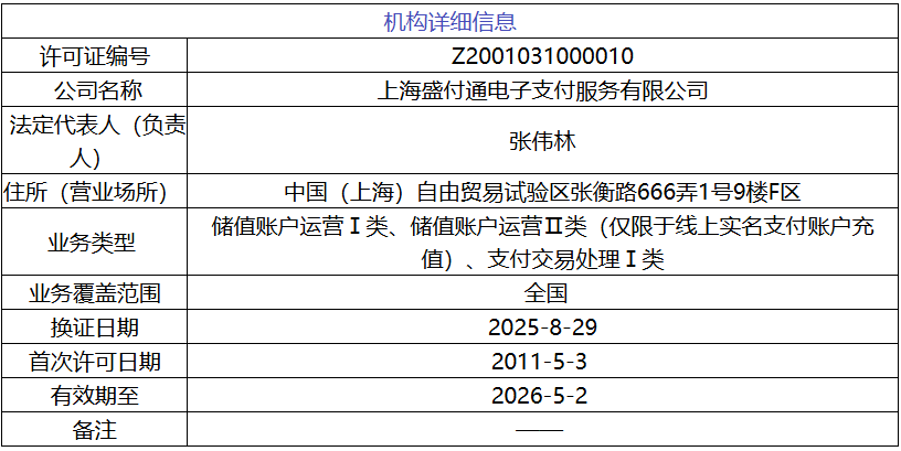 据移动支付网了解,盛付通成立于2008年6月,2011年5月获得首批支付牌照。获牌初期,盛付通资质类型仅为互联网支付及预付卡发行与受理(仅限于线上直接消费及实名支付账户充值)。后续通过业务增项,盛付通又获许可,拓展了移动电话支付、固定电话支付、银行卡收单等业务类型。支付业务类型重新划分后,盛付通业务类型已变更为“储值账户运营Ⅰ类、储值账户运营Ⅱ类(仅限于线上实名支付账户充值)、支付交易处理Ⅰ类”。此外,盛付通目前尚未换发长期有效的支付牌照,牌照有效期至今年5月。