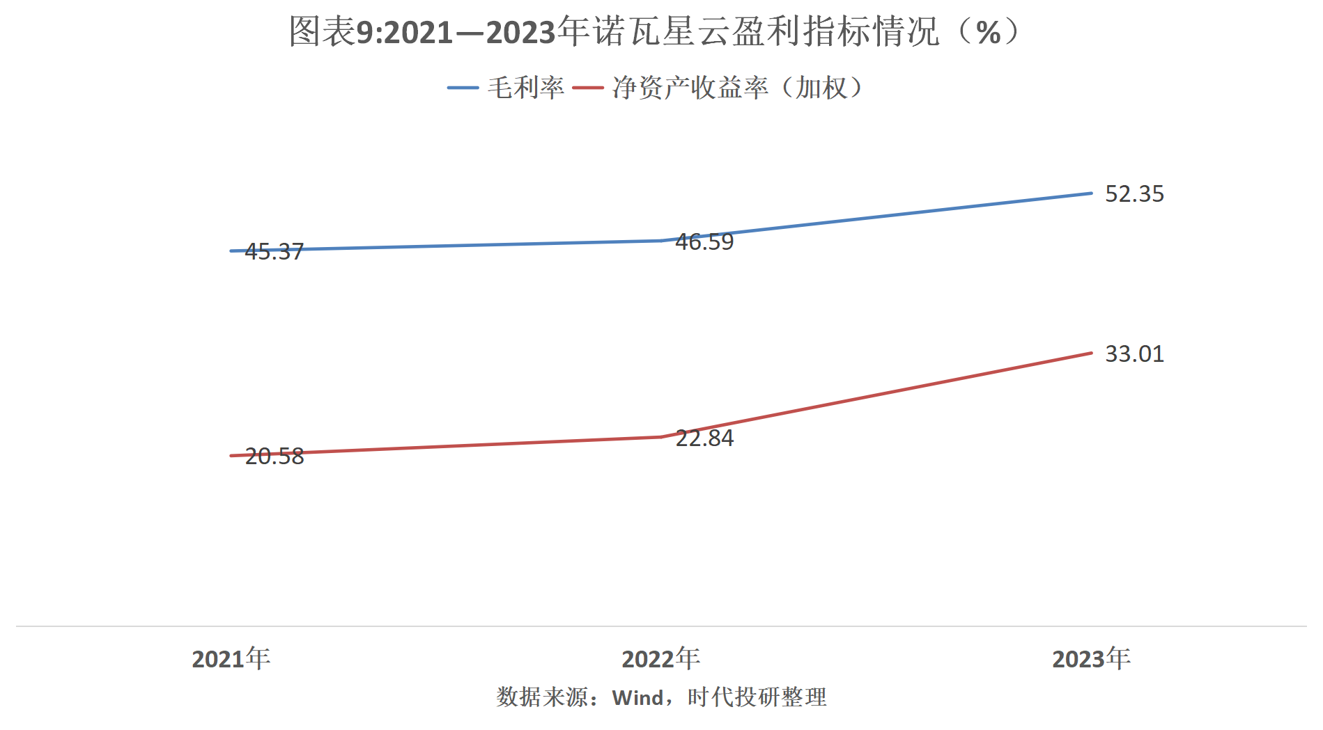 报告期内,诺瓦星云的盈利能力持续提升。报告期各期,诺瓦星云的毛利率分别为45.37%、46.59%、52.35%,净资产收益率(加权,下同)分别为20.58%、22.84%、33.01%,均呈现出持续上升趋势。其中,2023年诺瓦星云的净资产收益率在十大融资新股中位列第二。