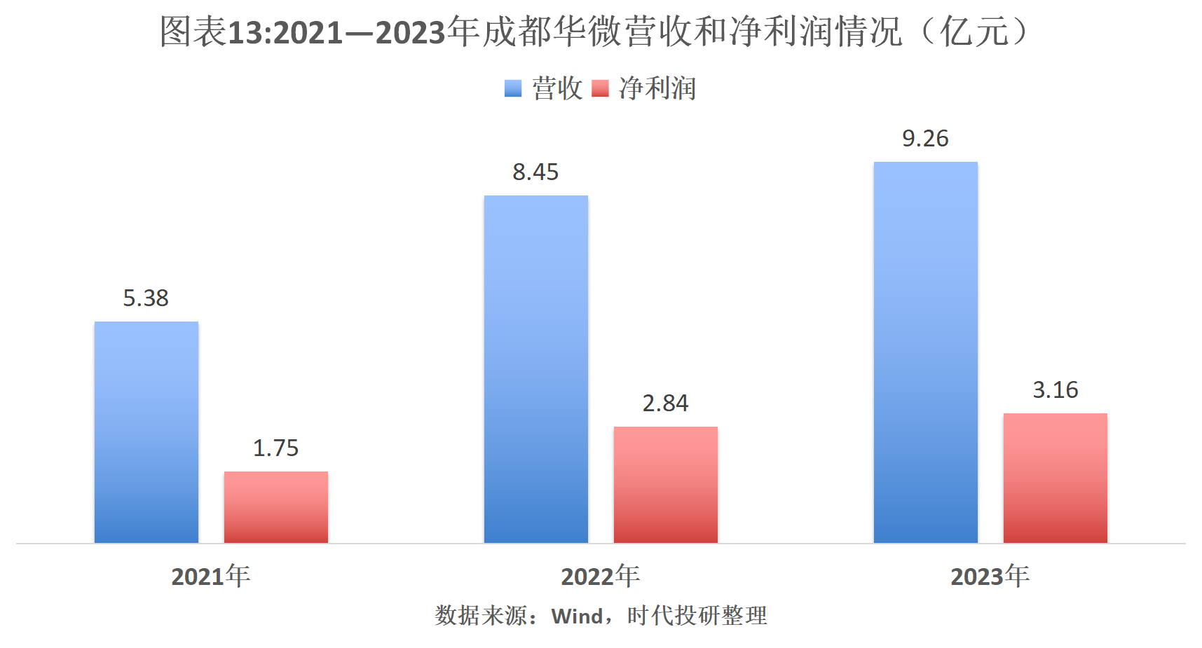Wind数据显示,报告期各期,成都华微的营收分别为5.38亿元、8.45亿元、9.26亿元,年复合增长率为31.18%;净利润分别为1.75亿元、2.84亿元、3.16亿元,年复合增长率为34.31%,营收和净利润持续稳步增长。