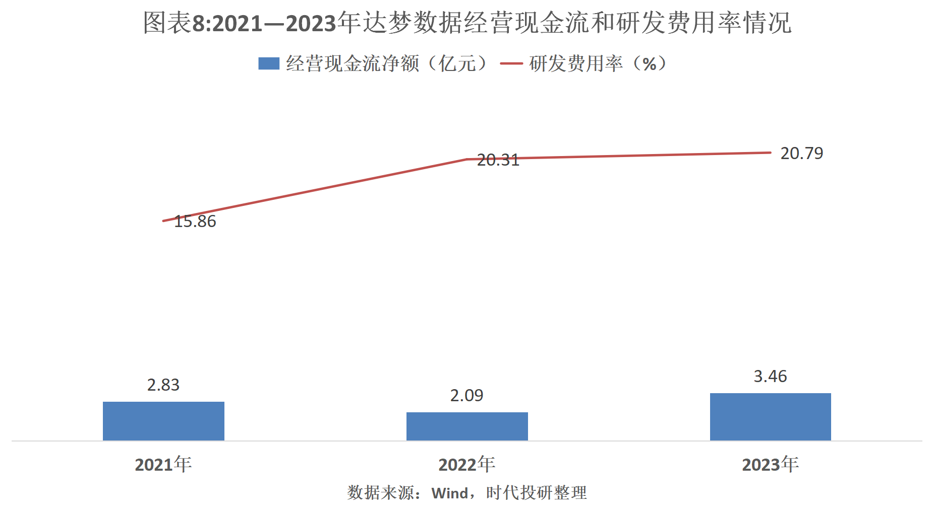 从现金流来看,报告期各期达梦数据的经营现金流分别为2.83亿元、2.09亿元、3.46亿元,“造血”能力较强,收益质量较高。