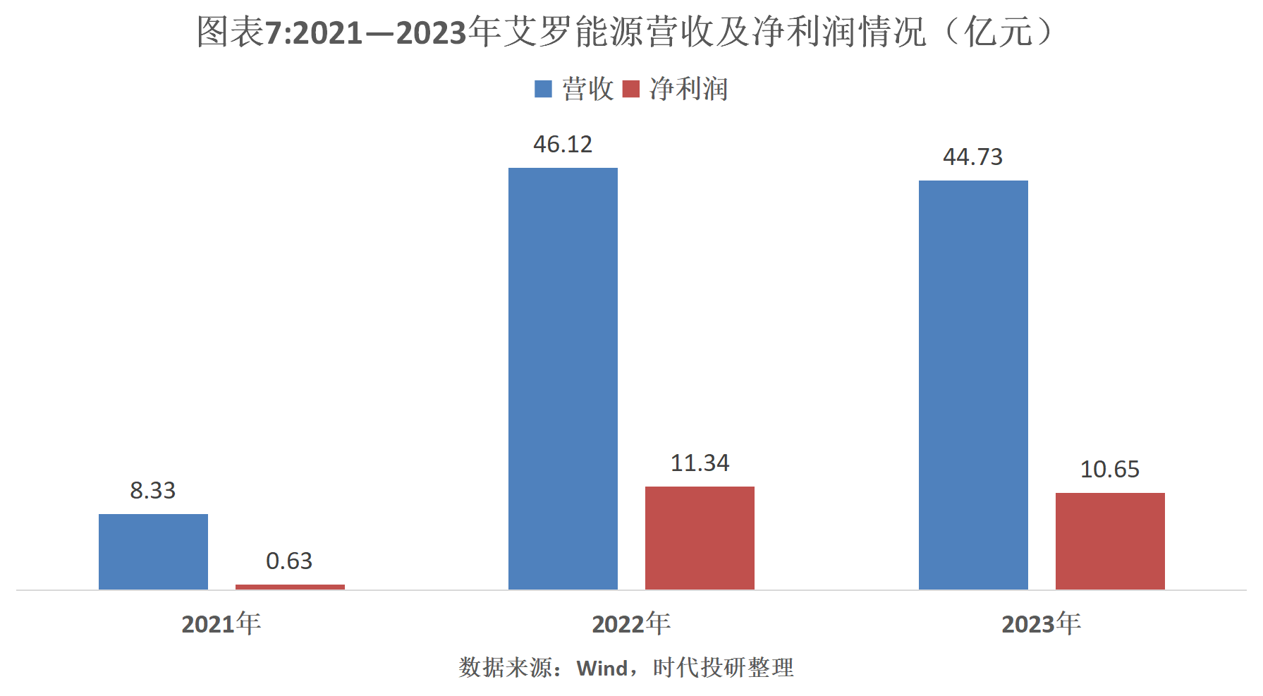Wind数据显示,报告期各期,艾罗能源的营收分别为8.33亿元、46.12亿元、44.73亿元,年复合增长率为131.77%;净利润分别为0.63亿元、11.34亿元、10.65亿元,年复合增长率为311.49%,增速较为迅猛。