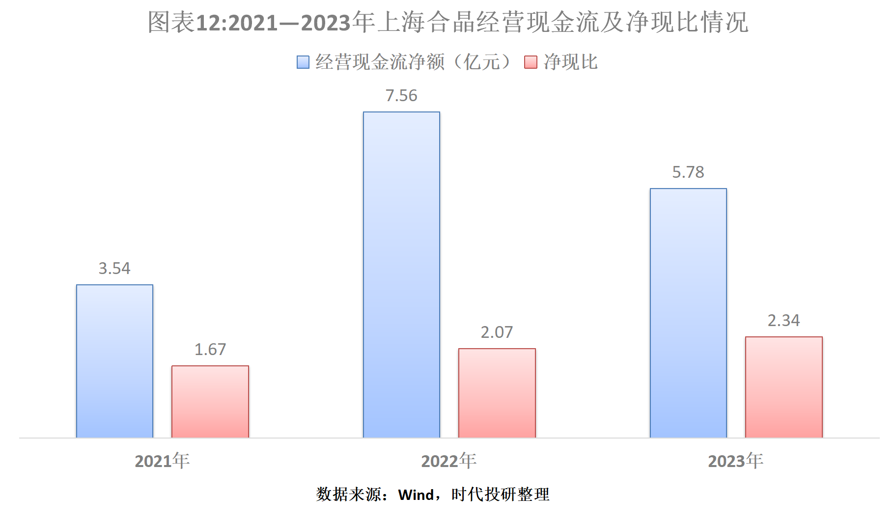 从现金流来看,报告期各期,上海合晶的经营现金流净额分别为3.54亿元、7.56亿元、5.78亿元,净现比分别为1.67、2.07、2.34,净利润“含金量”持续提升。