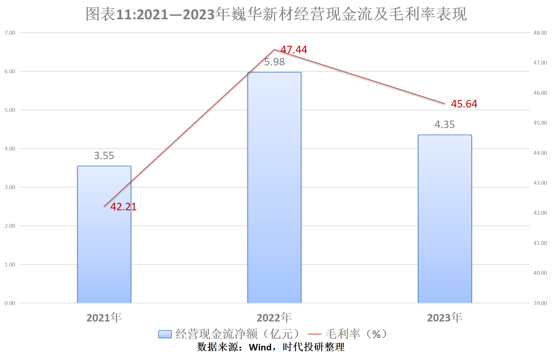从现金流来看,巍华新材的“造血”能力同样较强,财务状况较为健康。Wind数据显示,报告期各期,巍华新材的经营现金流净额分别为3.55亿元、5.98亿元、4.35亿元。