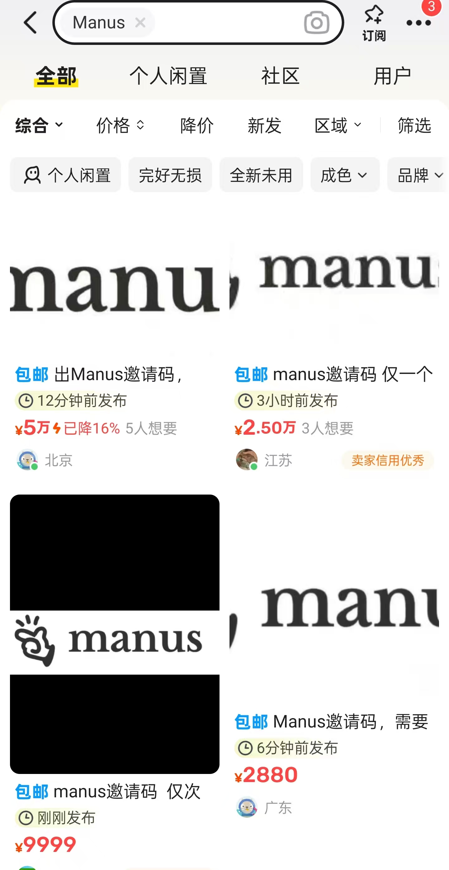 不过,目前二手平台上,已经出现了第一批吃Manus红利的人。