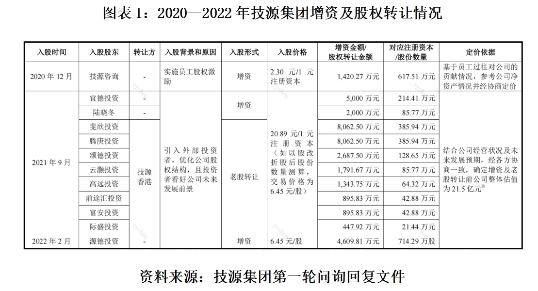 值得注意的是,IPO前,周京石、龙玲夫妇两人曾通过股转大额套现。如图表1所示,2021年9月,技源集团通过技源香港进行了增资和老股转让,其中引入增资金额7000万元,通过老股转让则获得2.42亿元。