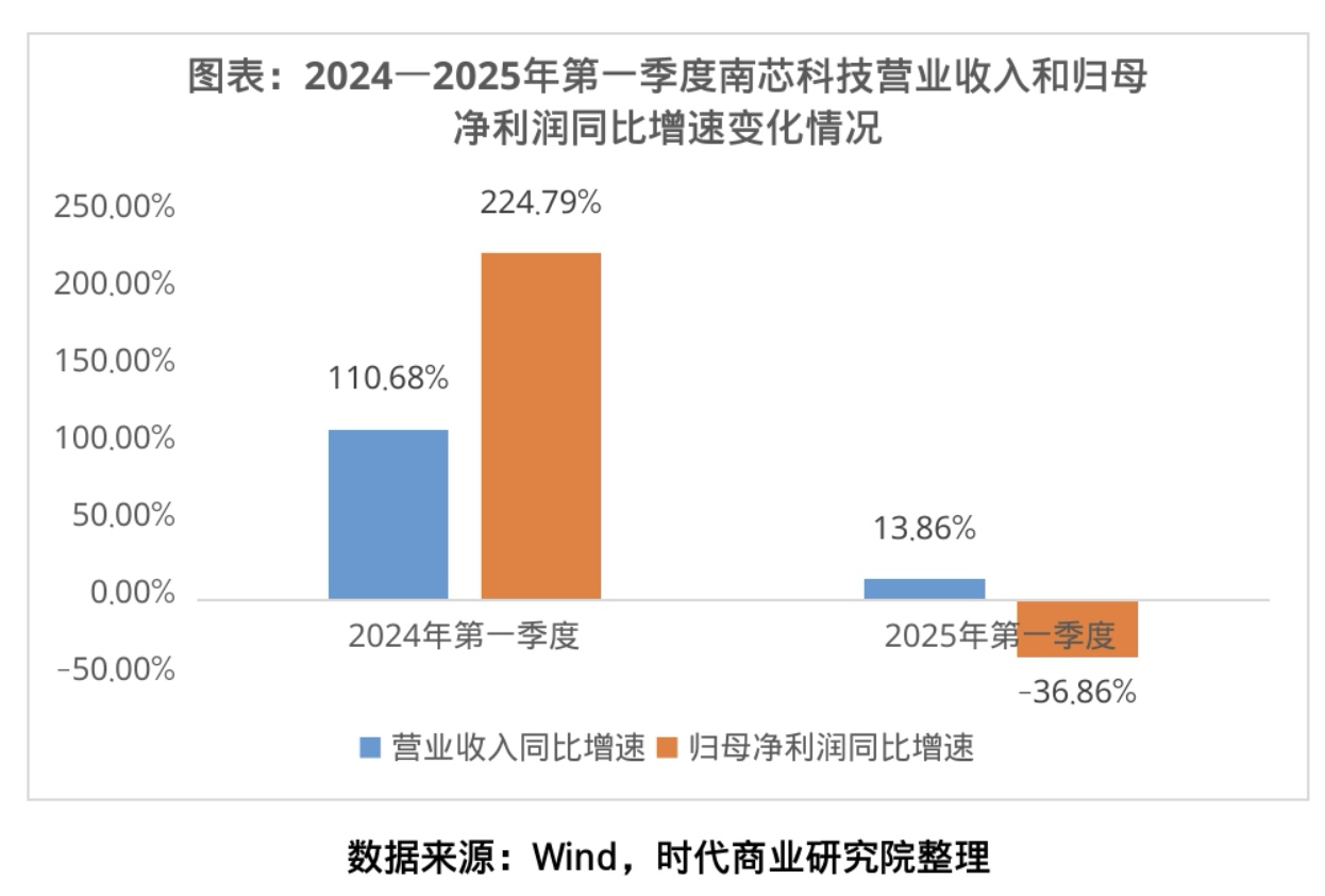 一季报显示,2025年第一季度,南芯科技的营业收入仅同比增长13.86%,归母净利润同比大幅下滑36.86%。