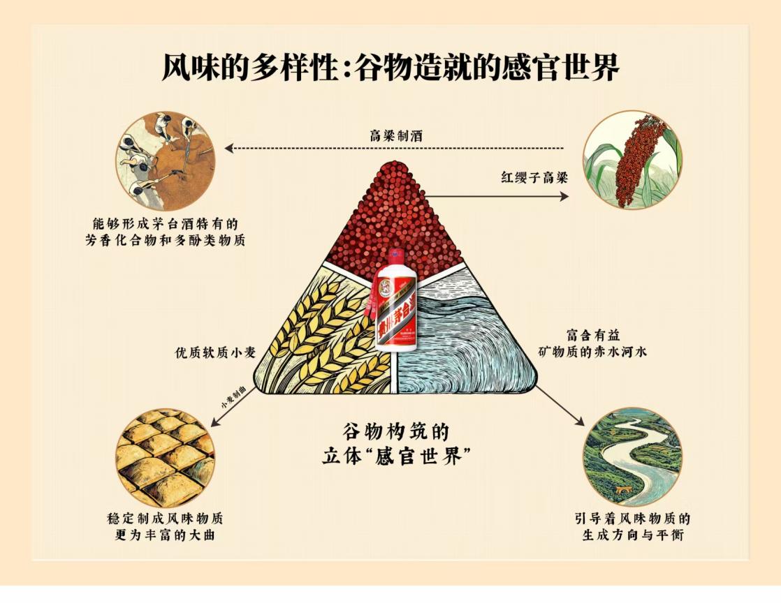 高粱、小麦与水,共同组成了茅台酒风味多样性的关键密码,也是其酱香品格不可复制的源头。