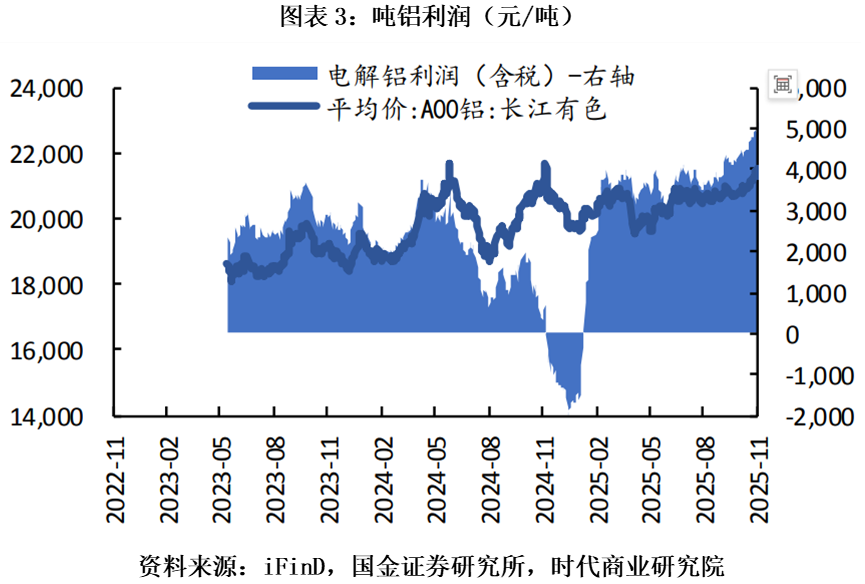 电解铝行业在供给刚性上限与需求韧性共同作用下,持续维持紧平衡格局。氧化铝价格走弱则进一步提高了全行业的利润基础。