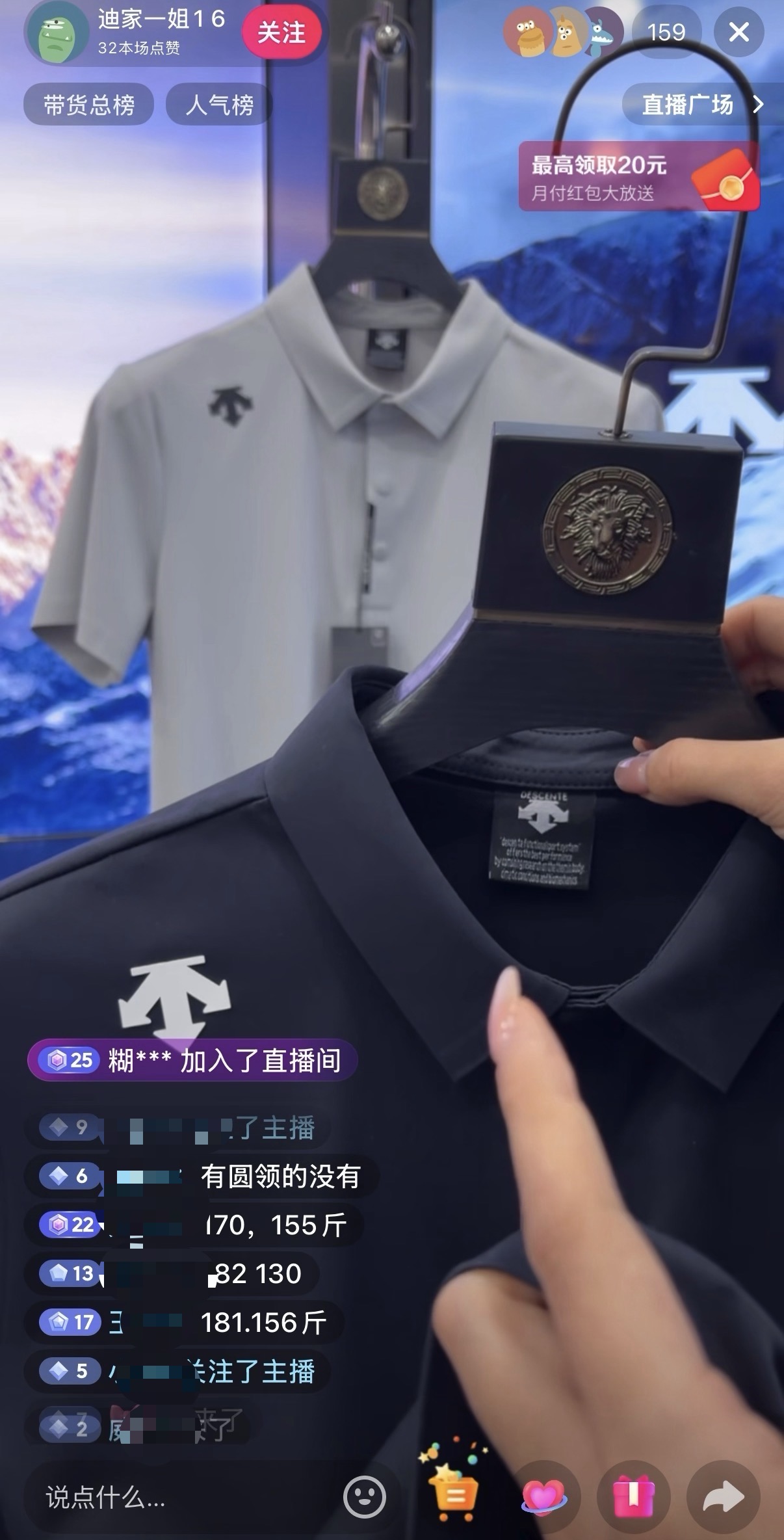 直播间主播正在介绍“迪桑特”T恤。