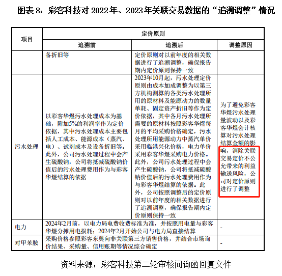 更让人捏把汗的是,彩客科技还依据这个新定价,对2022年、2023年的关联交易数据进行了“追溯调整”。如果以前的定价是公允的,为什么要追溯?